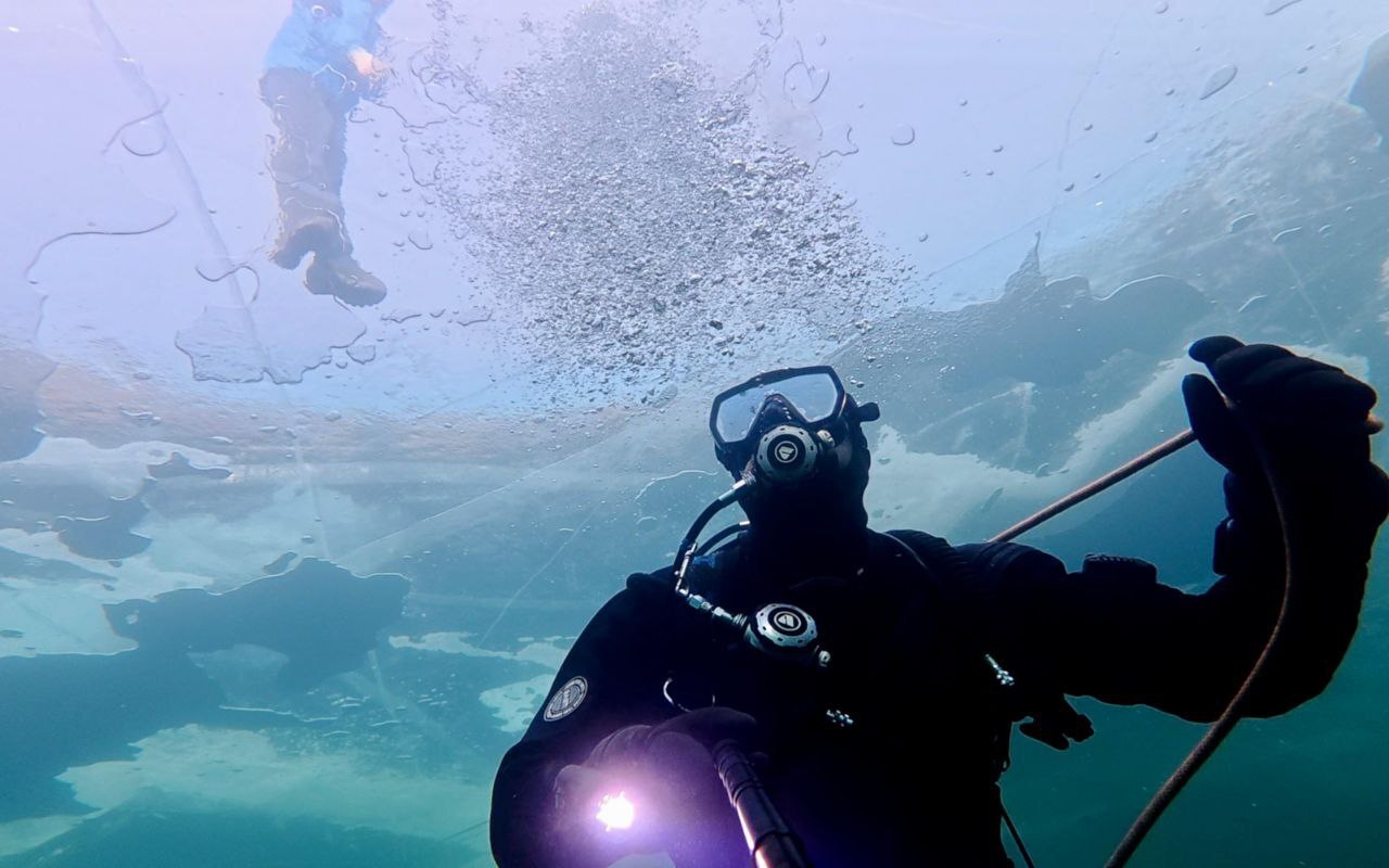 Подлёдные погружения позволяют окунуться в удивительные подводные пейзажи, созданные лучами солнца, пробивающимися через прозрачный лёд.