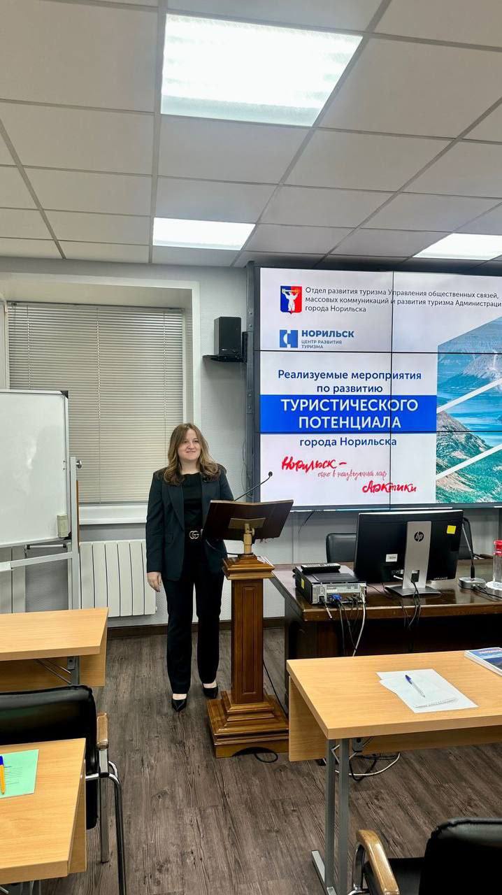 Начальник управления общественных связей, массовых коммуникаций и развития туризма Администрации города Норильска выступила с докладом о «Системном подходе в развитии туризма на муниципальном уровне». В качестве примера было рассмотрено муниципальное образование город Норильск - актуальные темы в условиях современной экономики, где развитие туризма может стать важным фактором для укрепления местных сообществ и создания новых рабочих мест. Повышение квалификации для участников программы станет дополнительным стимулом для профессионального роста и развития туристической отрасли в нашем крае.