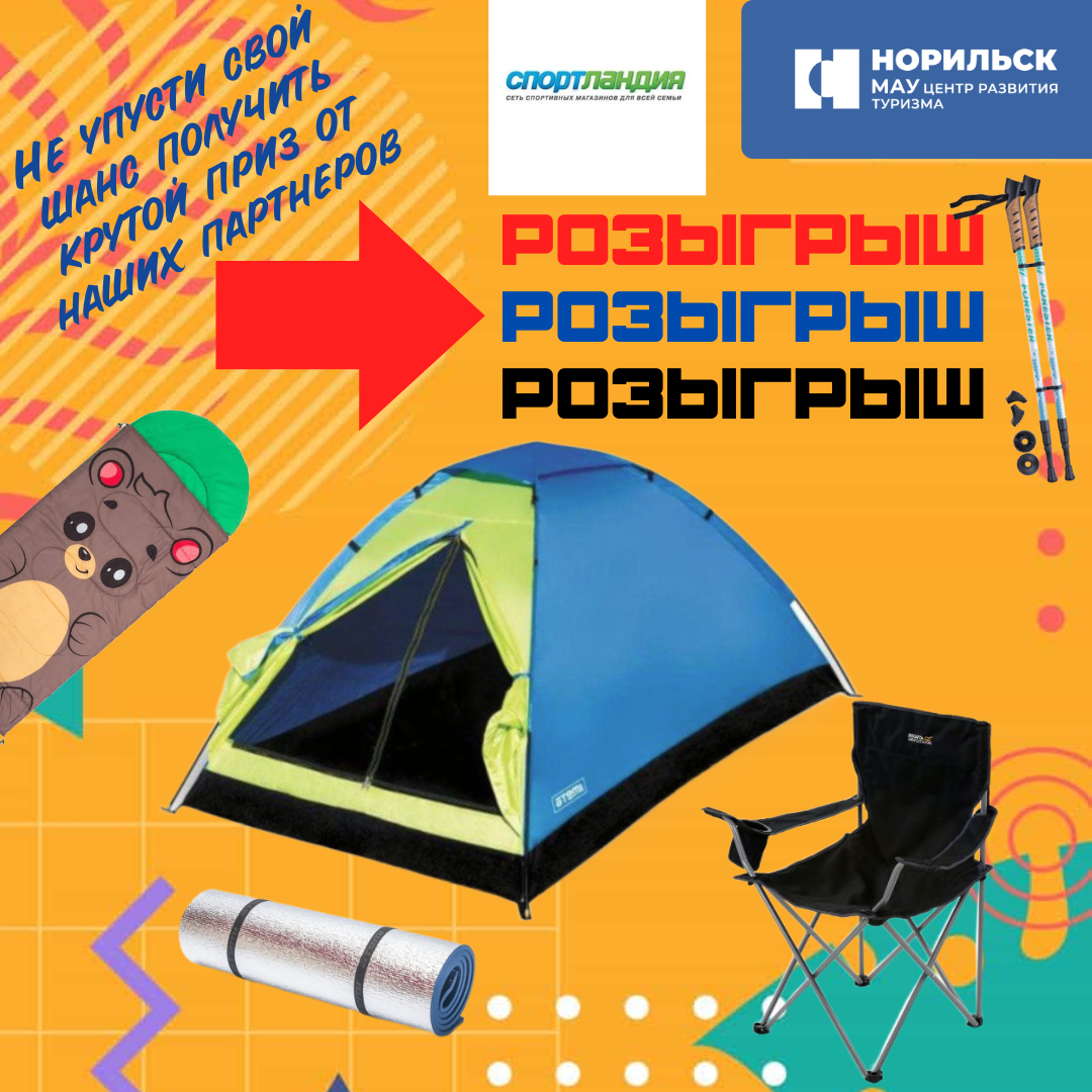 У вас появится возможность стать обладателем туристической палатки, спального мешка, одного из туристических кресел и других подарков!