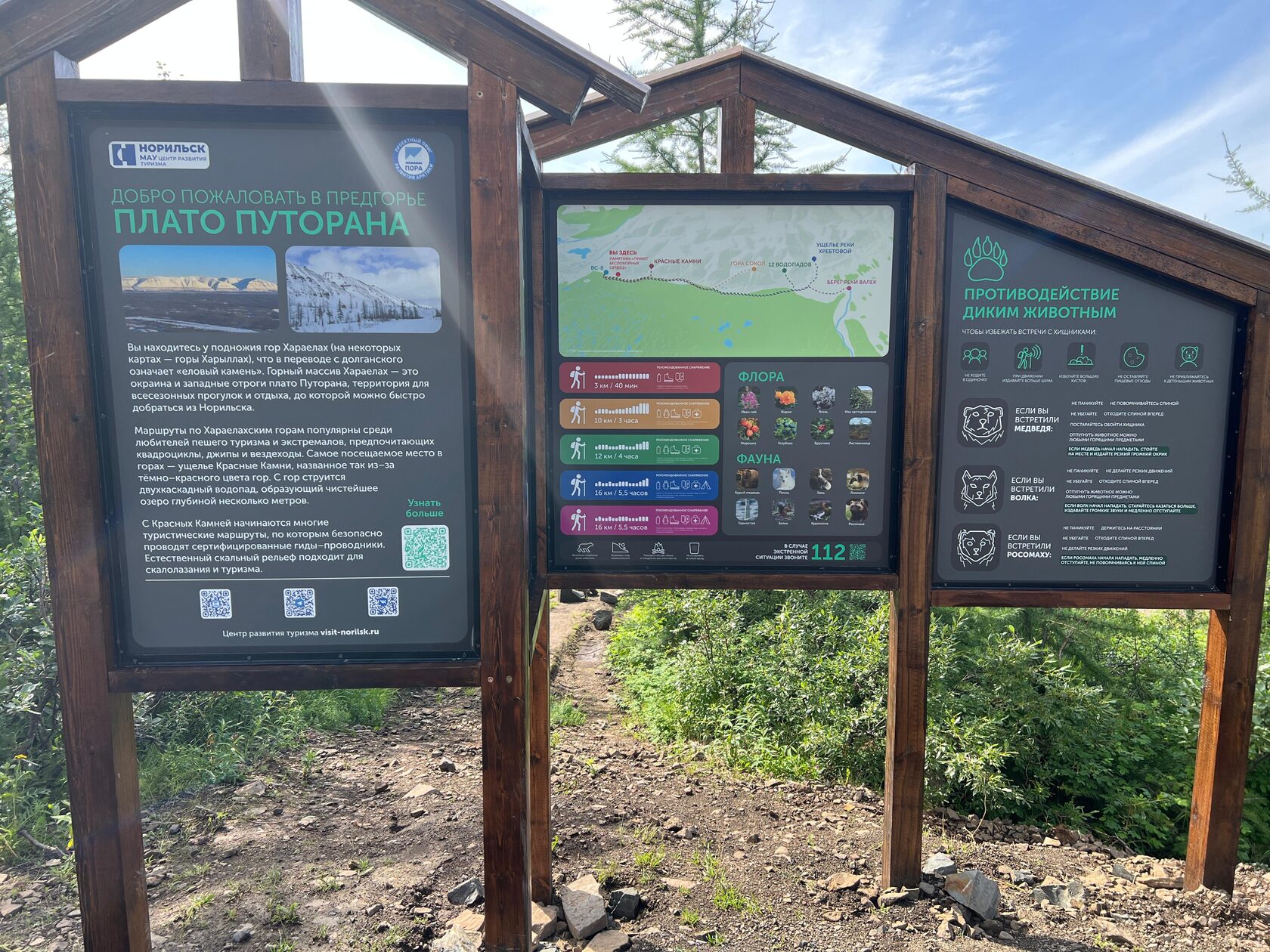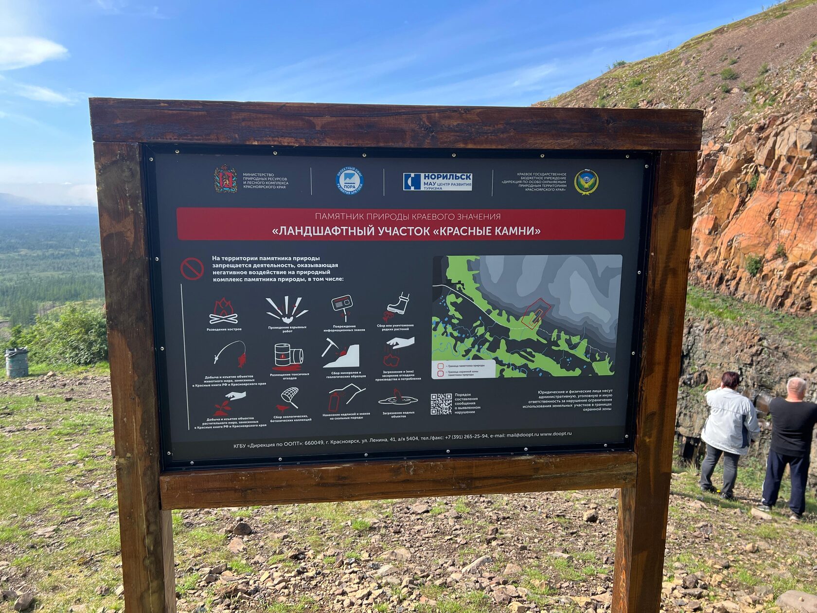 В одном из самых популярных туристических мест города - предгорье плато Путорана, на горном хребте Хараелах, где расположена особо охраняемая природная территория регионального значения – памятник природы «Ландшафтный участок «Красные камни» реализован проект по профилактике нарушений экологического законодательства среди населения, оценке антропогенной нагрузки и масштабов ущерба скальным породам от вандальных надписей, очистке территории от мусора, а также установке системы информационных аншлагов.